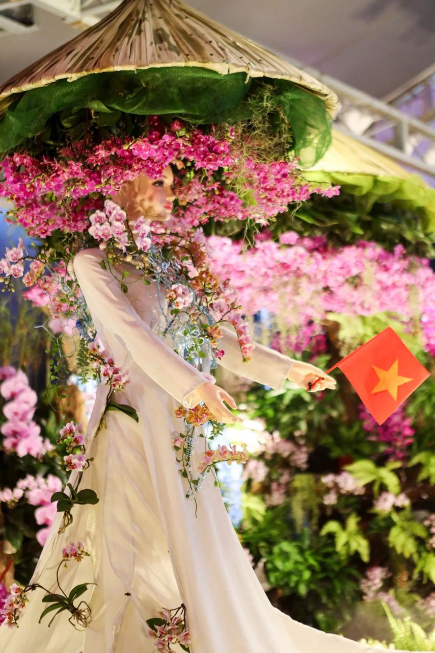 Theo ban tổ chức, trung tâm của tác phẩm "Hồn Việt" là mô hình cô gái khoác áo dài trắng, đội nón lá đại diện cho hình ảnh người phụ nữ Việt Nam, xung quanh là năm chiếc nón lá đại diện cho 5 châu lục.