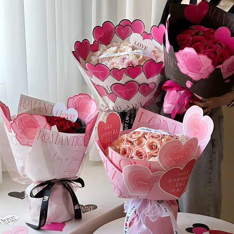 Chất liệu giấy mềm mịn, nhẹ nhàng, dễ uốn và gấp nếp. Giấy thường có họa tiết nổi bật như họa tiết trái tim, viền cháy, họa tiết sơn dầu, vân mây, Châu Âu cổ điển..., tạo cảm giác sang trọng, độc đáo, tính thẩm mỹ và cá nhân hóa cao. Giấy nghệ thuật không chỉ là phần nền cho bó hoa mà còn làm cho món quà trở nên bất ngờ và nổi bật.