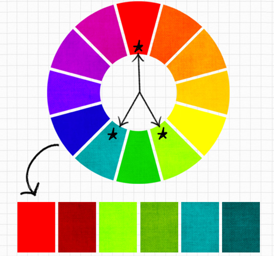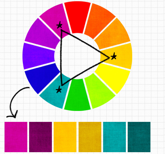 6. Nguyên tắc phối màu bổ túc bộ ba (hình tam giác)