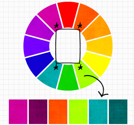 7. Nguyên tắc phối màu bổ túc bộ bốn (hình vuông/ hình chữ nhật)